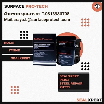 Sealxpert PS102 Steel Repair Putty กาวอีพ๊อกซี่ เนื้อครีมเข้มข้น 2 ส่วนมีเนื้อโลหะผสม ใช้ได้กับโลหะ คอนกรีตและพลาสติกบางชนิด แห้งได้ที่อุณหภมิห้องทนทาน ต่อน้ำมัน น้ำ และสารเคมี