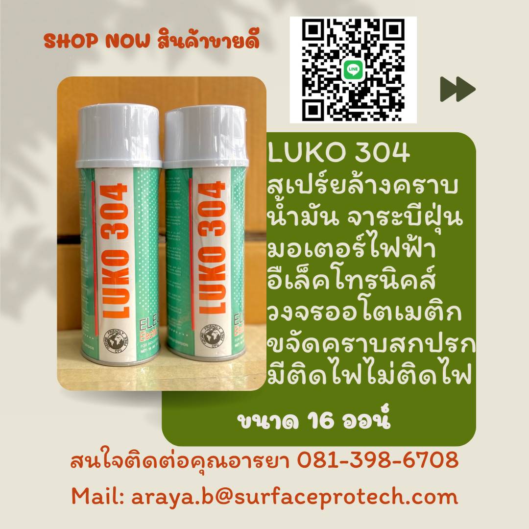 LUKO304 Electric Motor Cleanerสเปรย์ล้างมอเตอร์ชนิดติดไฟและไม่ติดไฟน้ำยาขจัดคราบน้ำมันจาระบี,ฝุ่น,คราบสกปรกในมอเตอร์ และอุปกรณ์ไฟฟ้าต่างๆ