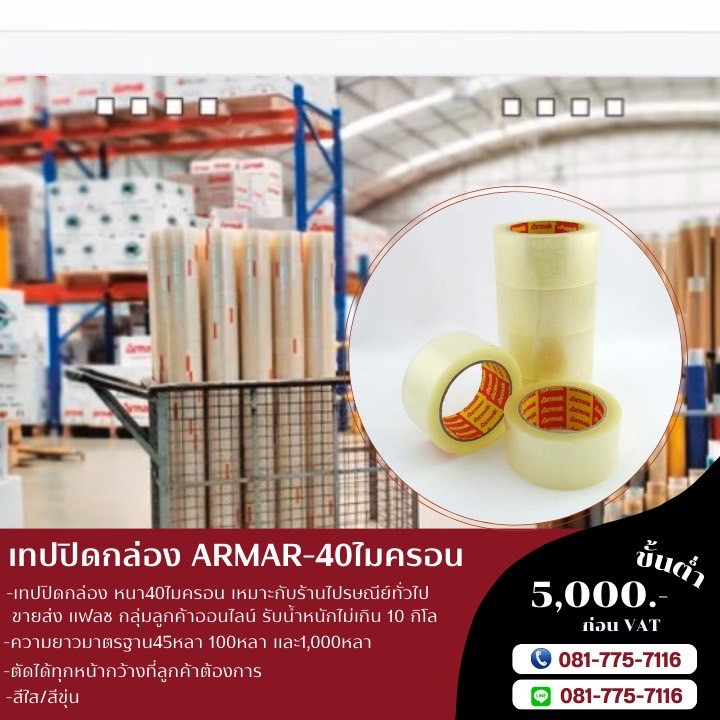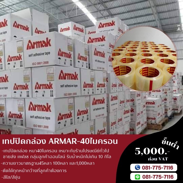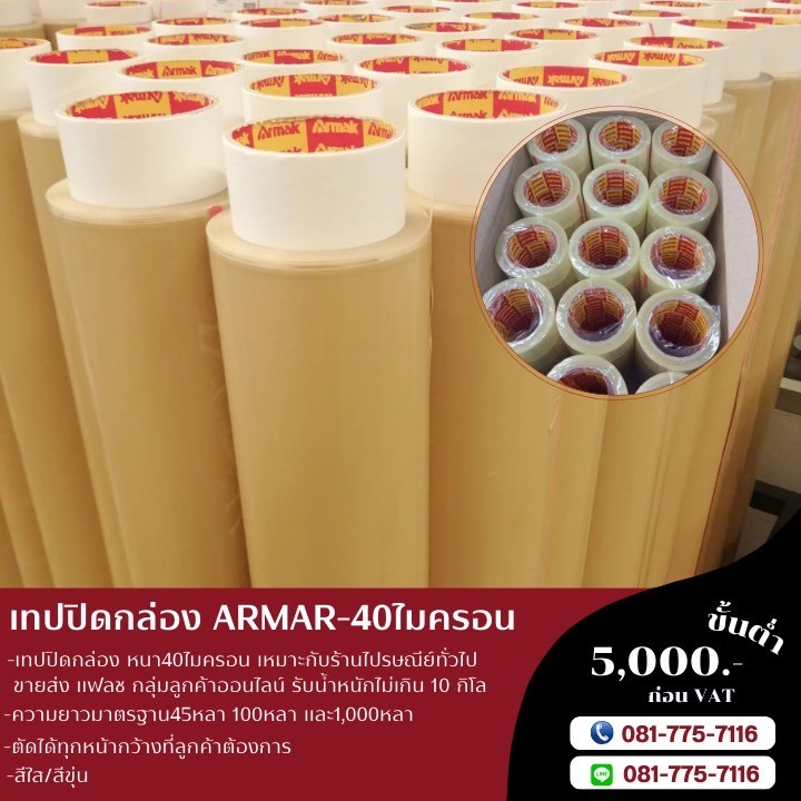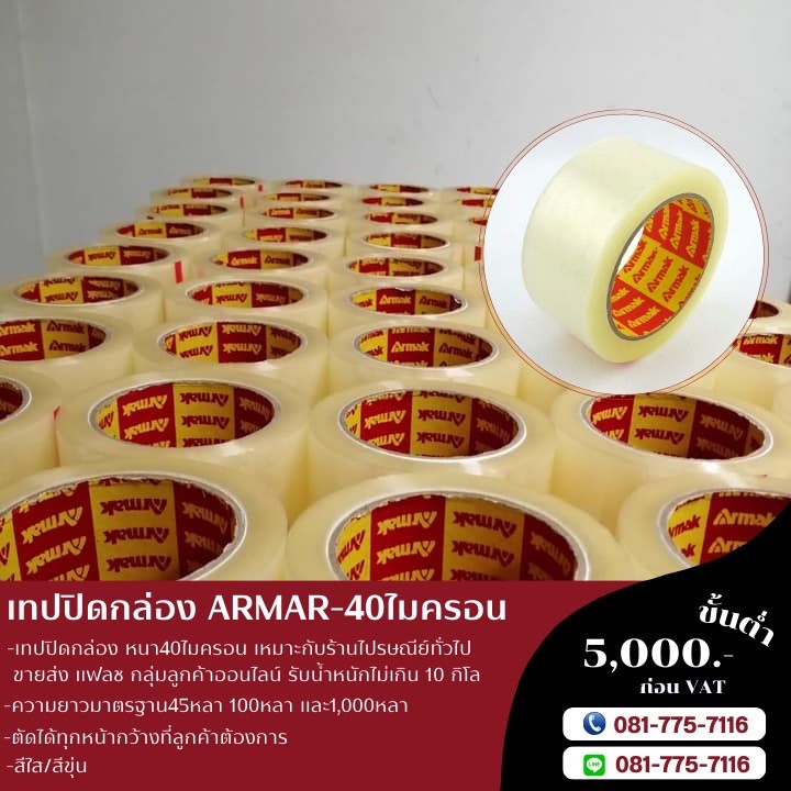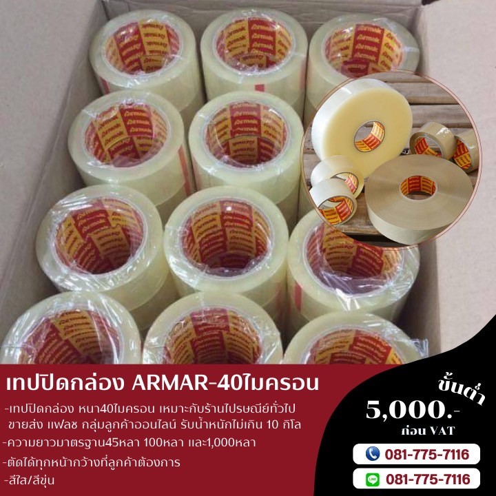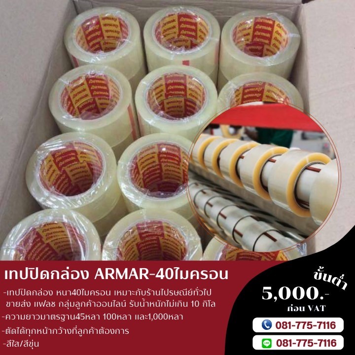 เทปปิดกล่อง40ไมครอน เทปกาวArmak เทปใส เทปขุ่น เทปกาวโรงงาน